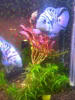 Polar blue parrot fry 1 - 1.2cm. American cichlid. 24°c - 28°c. High protien diet. Bred in house and raised on our own growth food mix to help them to be as healthy as possible.